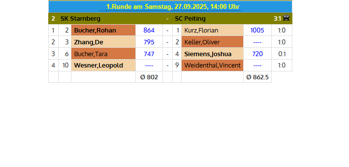 60. Stadtmeisterschaft: Keine Überraschungen in der 1. Runde, Auslosung der 2. Runde am 3. Oktober