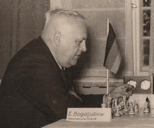 Gab am 16.01.1927 gegen 44 Gegner seine erste Simultanvorstellung in Starnberg: der zweifache WM-Herausforderer Efim Bogoljubow (Bildquelle: www.wolfgang-unzicker.de)