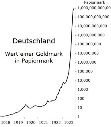 Massive Geldentwertung im Deutschen Reich Anfang der 1920er-Jahre im Rahmen der „Hyperinflation“ (Bildquelle: www.wikiwand.com)
