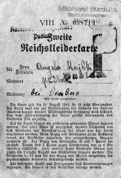 Beispiel einer Reichskleiderkarte, die im November 1939 im gesamten Deutschen Reich zum Erwerb von Textilien ausgegeben wurden (Bildquelle: Wikipedia).
