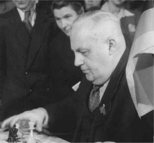 Gab zwischen 1927 und 1936 drei Simultanvorstellungen in Starnberg, sein letzter Auftritt am 15.03.1936 blieb aufgrund seiner Managerin aber in keiner guten Erinnerung: Großmeister Efim Bogoljubow (Bildquelle: Screenshot aus „Welt im Film“, 312/1951).