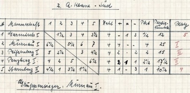 26.02.1950 in Weilheim: SK Starnberg – Weilheim 2:6 SK Starnberg – Mittenwald 6:2