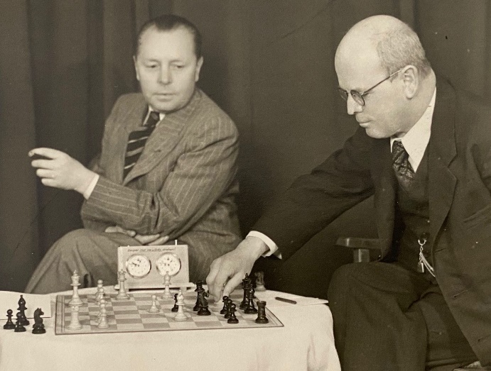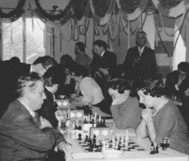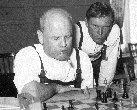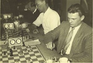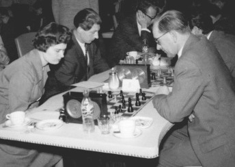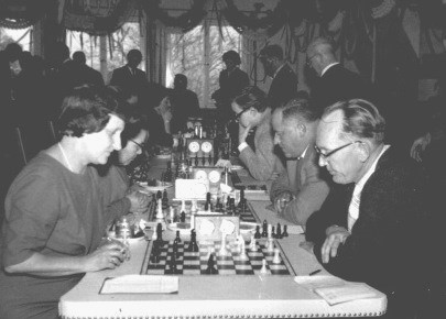Ein Achtungserfolg gelang Dr. Alois Thurmayr in der Begegnung um Platz 3 zwischen Starnberg und dem Damenschachklub München: er besiegte am Spitzenbrett die Deutsche Damenmeisterin Friedl Rinder. Neben Thurmayr spielten Paul Cornel (Brett 2) und Kurt Ewald (3) jeweils remis (Bildquelle: Archiv SK Starnberg).