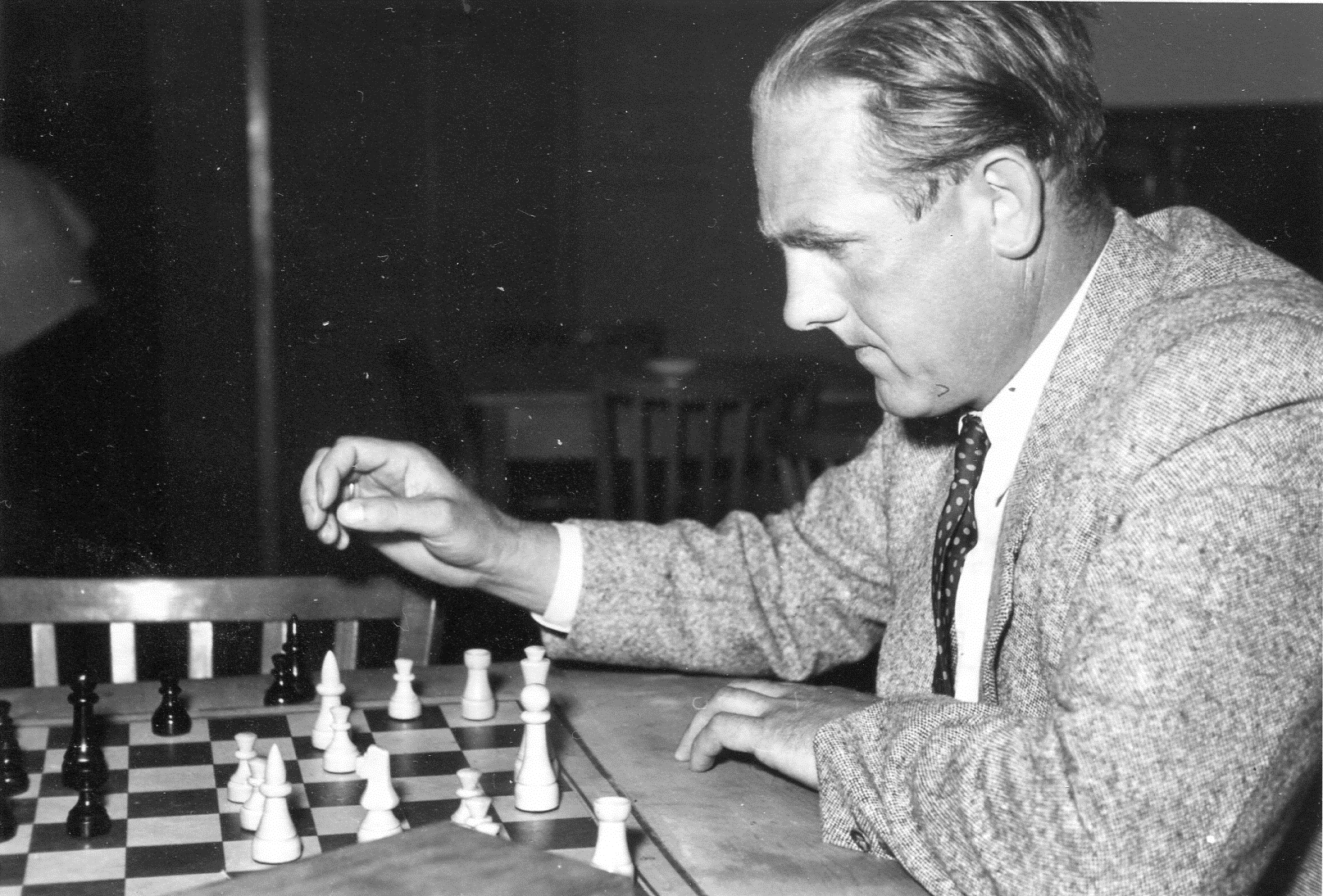 Zeigte wie bereits beim Bayer. Schachkongress 1942 auch bei seinem nächsten Besuch in Starnberg, einer Simultanvorstellung am 19.11.1950, sein enormes schachliches Können: der deutsche Spitzen-Großmeister Wolfgang Unzicker (Bildquelle: Deutsche Fotothek).