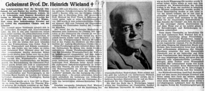 Trauriges Ende der Saison – Tod von Ehrenmitglied & Nobelpreisträger Geheimrat Prof. Heinrich Wieland