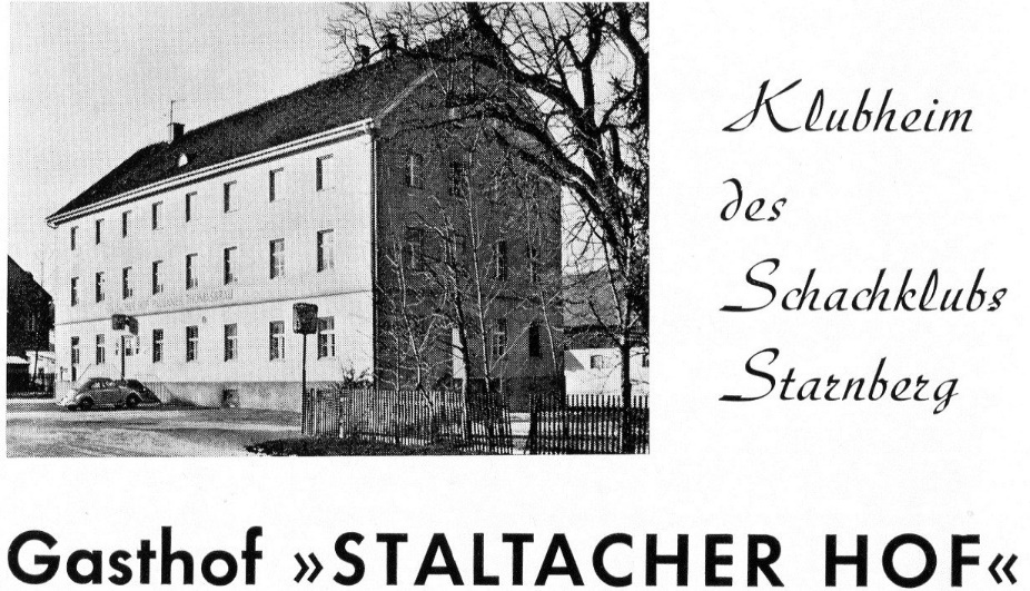 Die Schüler des Starnberger Gymnasiums waren Ende der 50er-Jahre aber nicht die Einzigen, die in einer eher schmucklosen Atmosphäre Schachfiguren hin- und herschoben. Alle Mitglieder des SK Starnberg mussten sich ab der Saison 1958/59 auf rustikalere Verhältnisse einstellen. Denn der Verein wechselte zuvor erneut sein Spiellokal: vom Hotel „Seehof“, das die Schachspieler nach der Klubneugründung am 30.03.1949 beherbergt hatte, ging es in den „Staltacher Hof“ (der später zum „Gasthaus an der Au“ umbenannt wurde). Die genauen Hintergründe des Umzugs sind unklar. Fest steht aber, dass die Bande des Vereins zu Adolf Hirt, Miteigentümer des Hotels „Seehof“ und Schachklub-Ehrenmitglied, keineswegs abgebrochen wurden. So fand ein Teil der Feierlichkeiten zum 40-jährigen Vereinsbestehen im Jahr 1960 wieder im Hotel statt. Mannschaftskämpfe, Spielabende und das Jugendtraining wurden mit dem Umzug aber nur noch im „Staltacher Hof“ abgehalten.