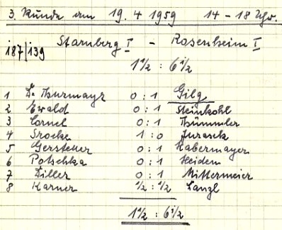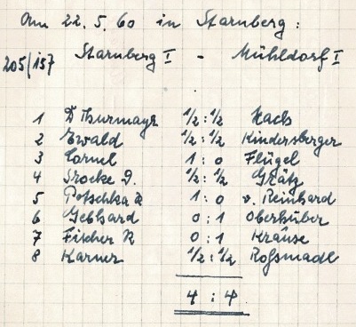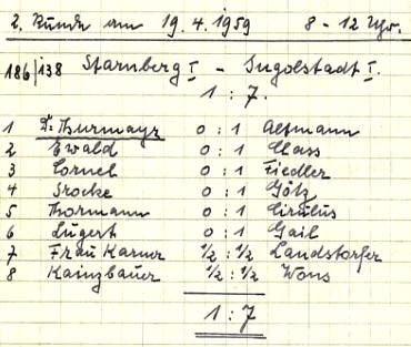 26.03.1950 in Weilheim: SK Starnberg – Peißenberg 4:4 SK Starnberg – Garmisch 4,5:3,5