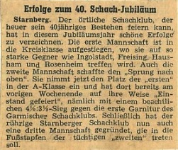 12.03.1952 in Unterpfaffenhofen: SK Starnberg – Unterpfaffenhofen 7:1 SK Starnberg – Gilching 7,5:0,5