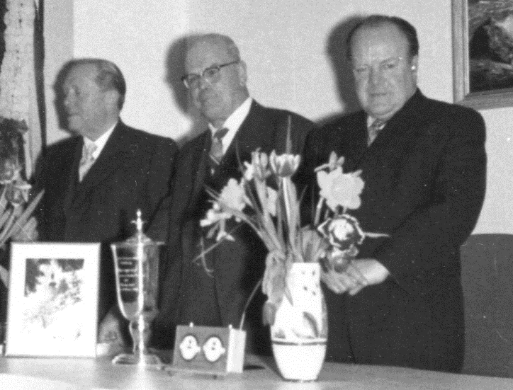 Der alte und neue Vereinschef umrahmt von zwei treuen Helfern: Christian Gerstetter (Mitte) mit Georg Biberthaler (2. Vorsitzender/links) und Schriftführer Wilhelm Nägle (Bildquelle: Archiv SK Starnberg / Aufnahme stammt aus dem Jahr 1960).