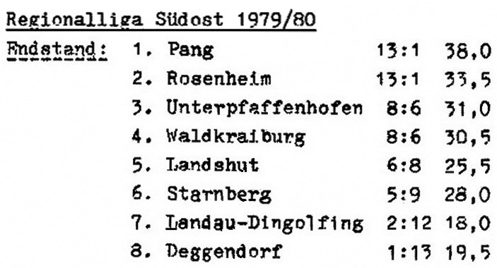 Zumindest kein zweiter Abstieg in Folge: doch auch mit dem 6. Platz bei ihrer Premierensaison 1979/80 in der neu gegründeten Regionalliga Südost konnte Starnbergs 1. Mannschaft kaum zufrieden sein (Bildquelle: Archiv SK Starnberg).