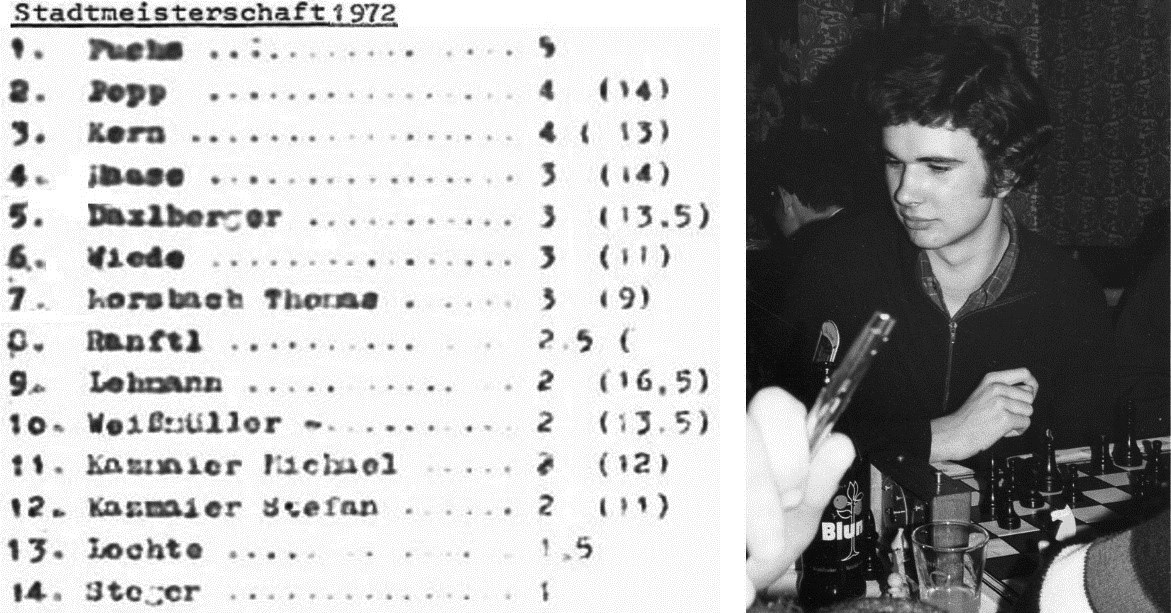 Jugend greift an: bei seiner ersten Starnberger Stadtmeisterschaft im Jahr 1972 gewann der 16-jährige Martin Fuchs gleich den Titel und wurde der zweitjüngste Sieger des Wettbewerbs (Bildquellen: Archiv SK Starnberg).