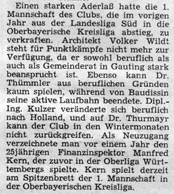 Auch der regionalen Presse war der unverhältnismäßige Stammspieler-Exodus innerhalb der 1. Mannschaft des SK Starnberg im Vorfeld der Saison 1972/73 nicht entgangen (Bildquelle: Archiv SK Starnberg).