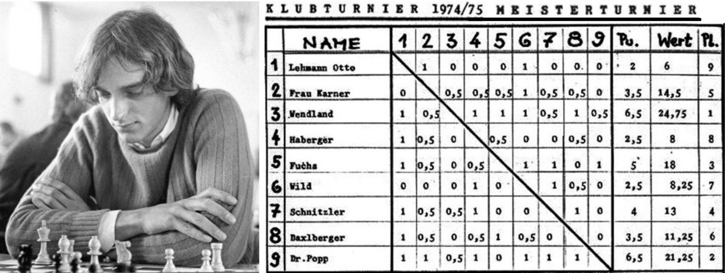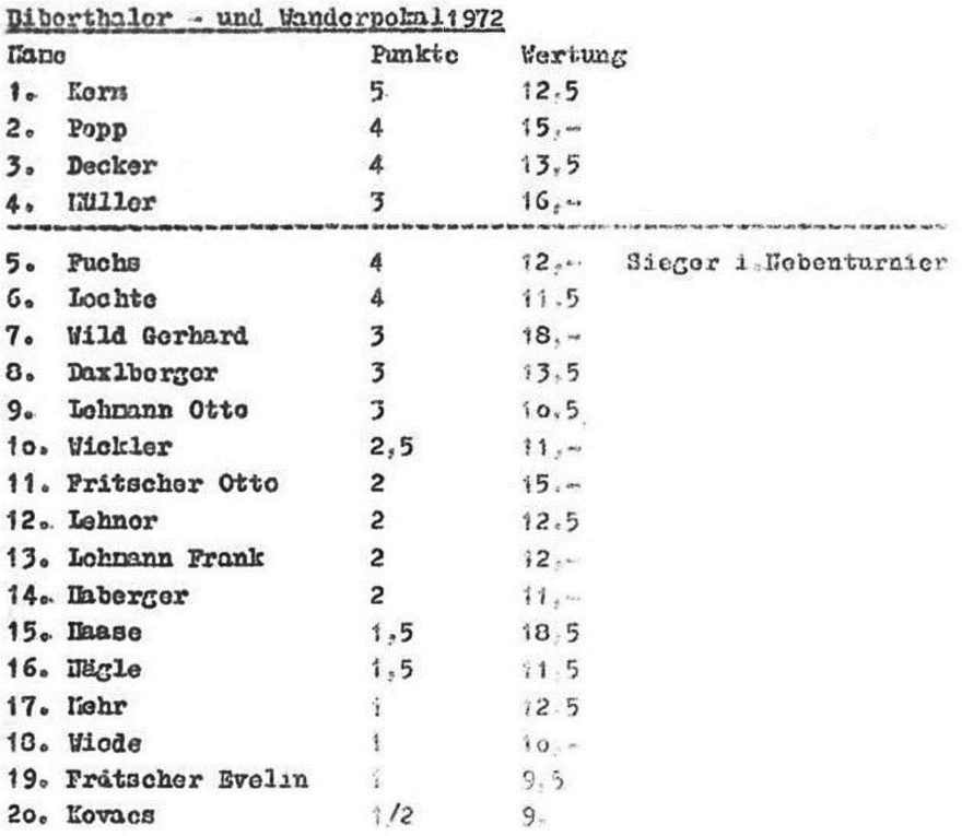 Beeindruckende Vorstellung bei der Premiere: mit dem herausragenden Ergebnis von 8,5 Punkten aus zehn Partien triumphierte Manfred Kern in der Saison 1971/72 bei seiner ersten Teilnahme am Meisterturnier der Klubmeisterschaft (Bildquellen: Archiv SK Starnberg).
