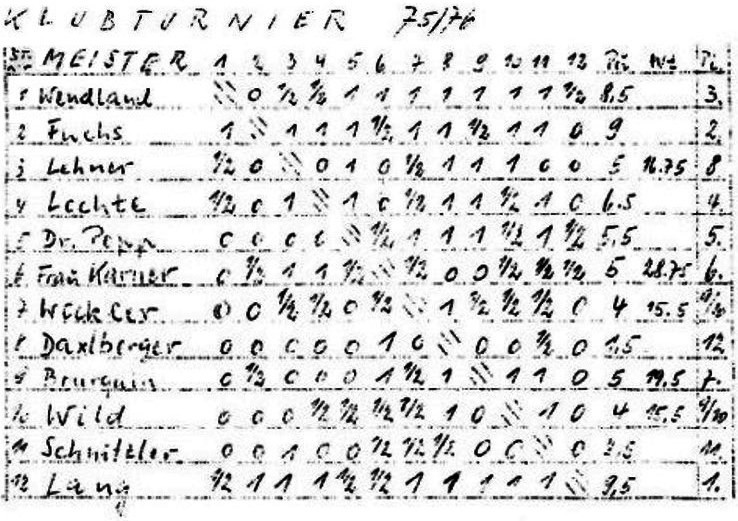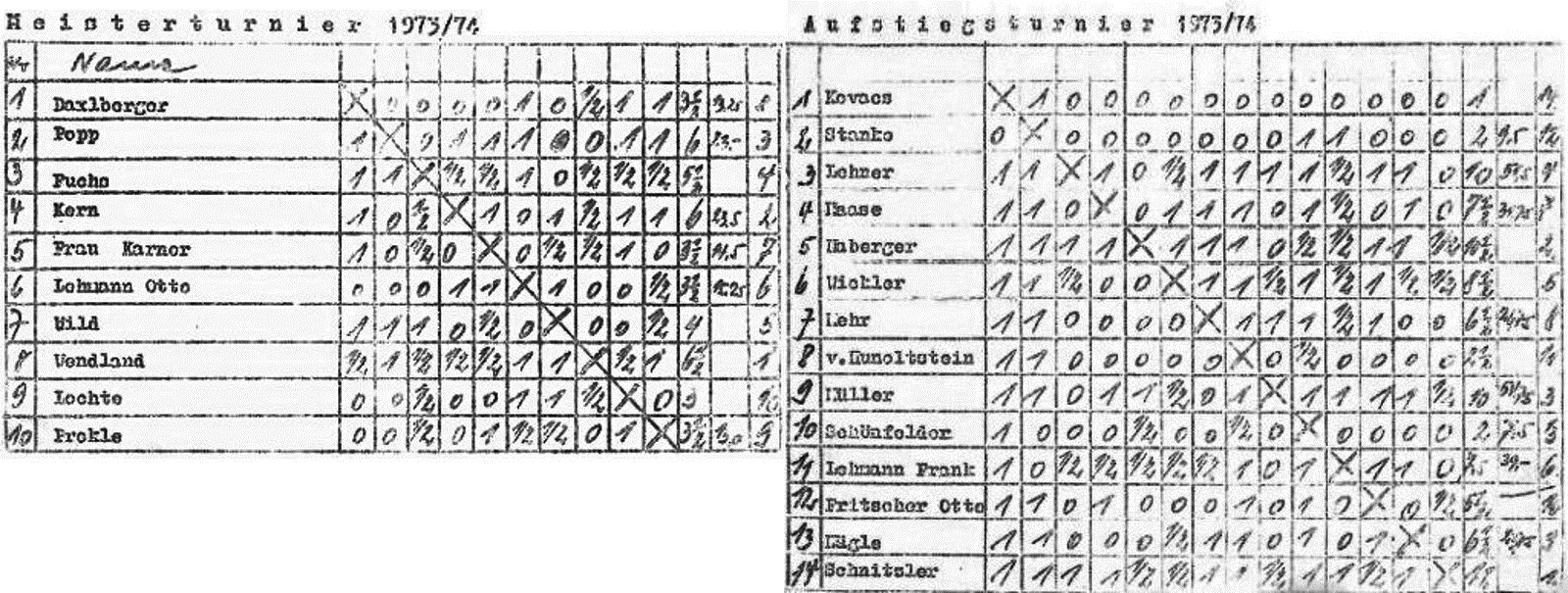 An die Durchführung einer B-Gruppe bzw. eines Aufstiegsturniers war mangels Teilnehmerinteresses indes nicht zu denken. Dies kam in der Geschichte des seit 1920 ausgetragenen Wettbewerbs äußerst selten vor. Zwar gab es auch in früheren Jahren zum Teil große Probleme bei der Turnierabwicklung wie bei der Klubmeisterschaft in der Saison 1949/50 mit nicht weniger als 37 Nullungen (siehe Kapitel 3). Das zweite Klubturnier in der Spielzeit 1920/21 musste sogar abgebrochen werden (siehe Kapitel 1). In beiden Fällen lag das Problem jedoch darin, dass es Schwierigkeiten gab, die Partien zwischen einer Vielzahl an Teilnehmern zu terminieren. Eine Knappheit an Interessenten für Starnbergs ältesten Schachwettbewerb stellte hingegen ein unerwünschtes Novum dar.