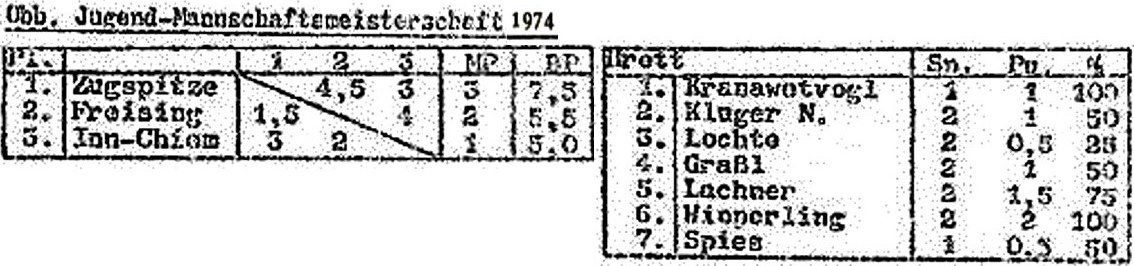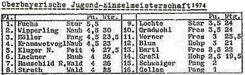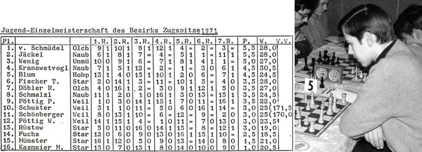 Für die Jugend-Bezirksmeisterschaft 1971 mussten sich die Starnberger Teilnehmer erstmals qualifizieren. Letztlich durften die ersten vier Spieler des Kandidatenturniers sowie der Klubmeister 1970/71 in der Jugendlichen-Klasse, Michael Kazmaier, starten (Bildquellen: Archiv SK Starnberg).