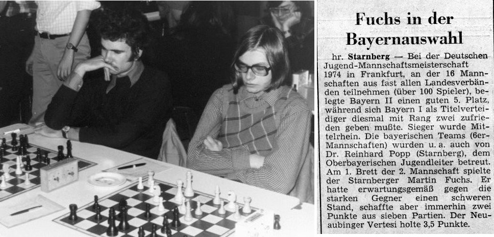 Obwohl Martin Fuchs nach dem Vereinsaustritt von Thomas Fischer im Dezember 1972 sicherlich der spielstärkste Jugendliche im SK Starnberg war, stand er keineswegs allein auf weiter Flur. So traten dem Klub Anfang der 70er-Jahre mehrere weitere Schachtalente bei, die schon bald von sich reden machen sollten – darunter Thomas Lochte, Martin Wickler sowie Otto und Evelin Fritscher. Verantwortlich hierfür war neben der unermüdlichen Arbeit von Jugendleiter Reinhard Popp eine Initiative des 16-jährigen Schülers Michael Steger und von Herbert Schmied, Studienrat am Gymnasium Starnberg. Sie veranstalteten an der Einrichtung von 08.06-27.07.1972 eine Schulschachmeisterschaft, an der 23 Schüler aus zwölf Klassen teilnahmen.