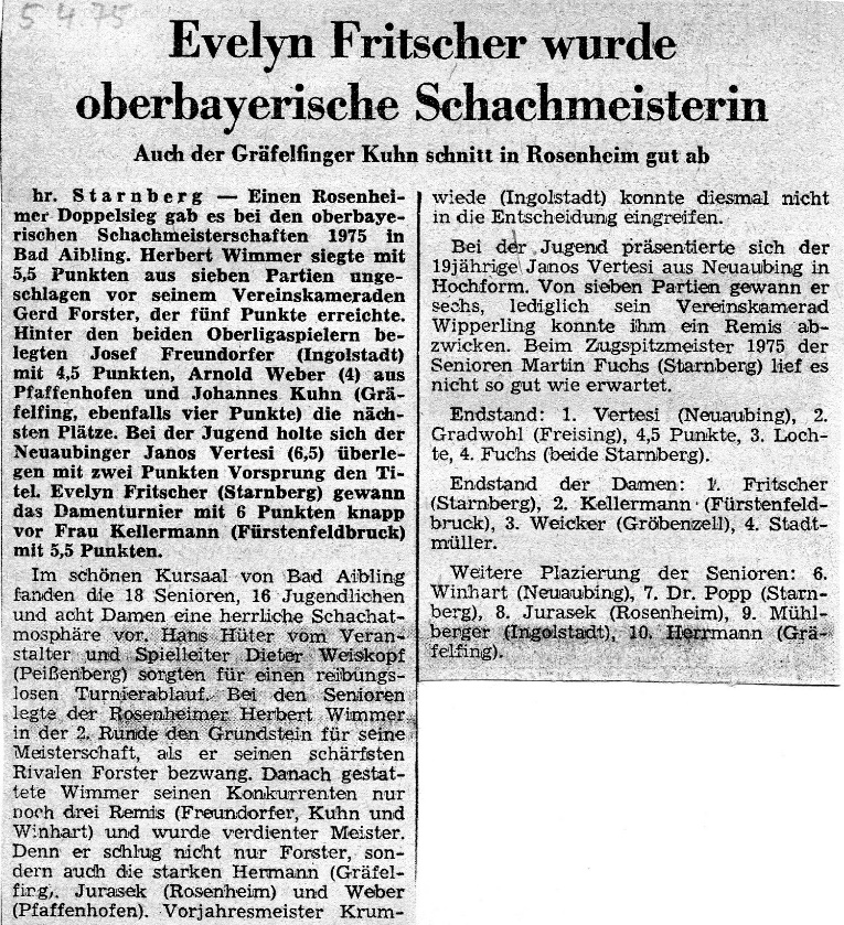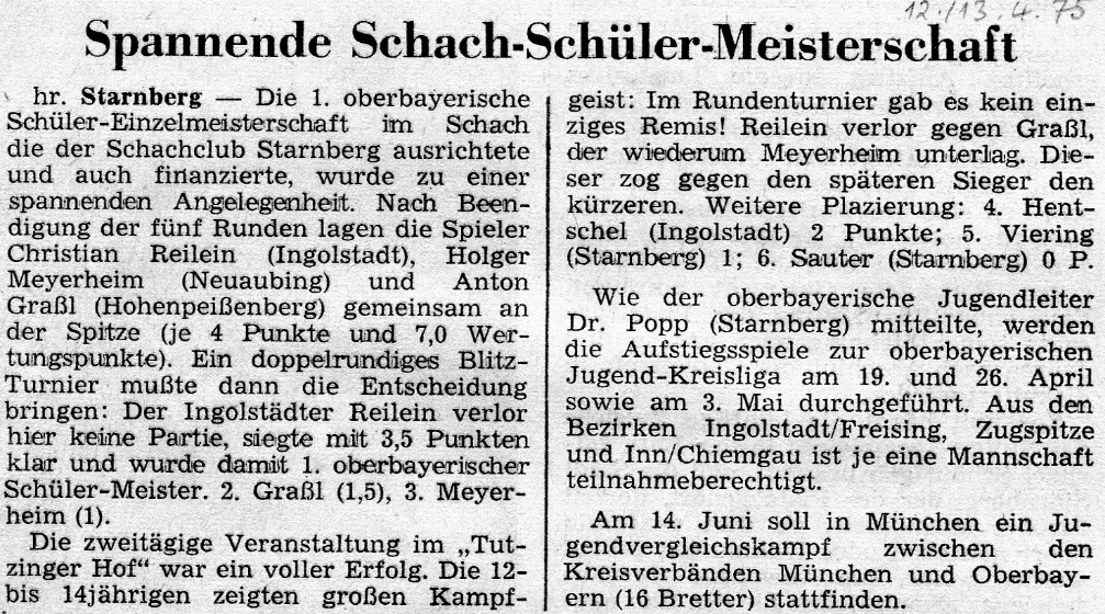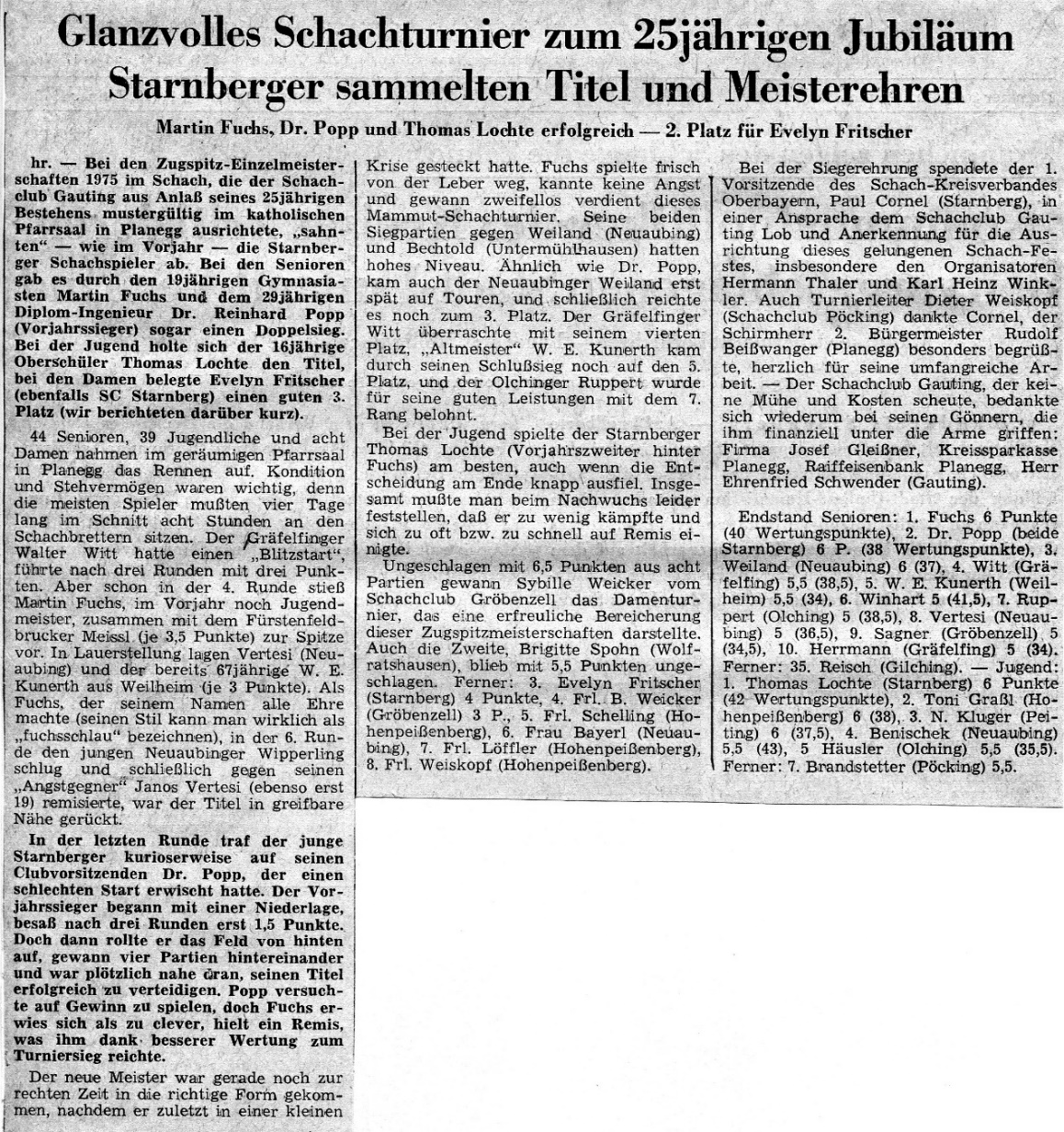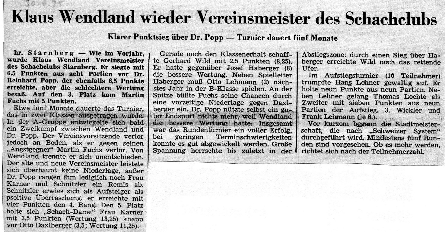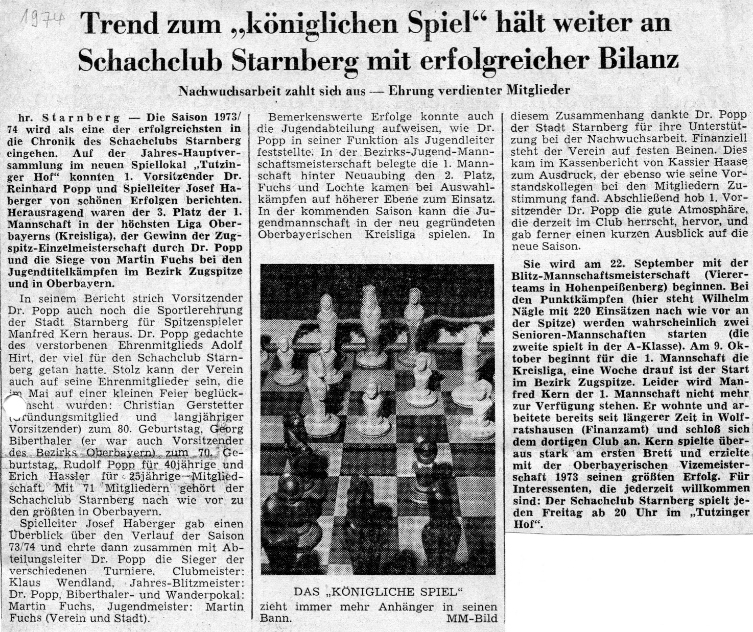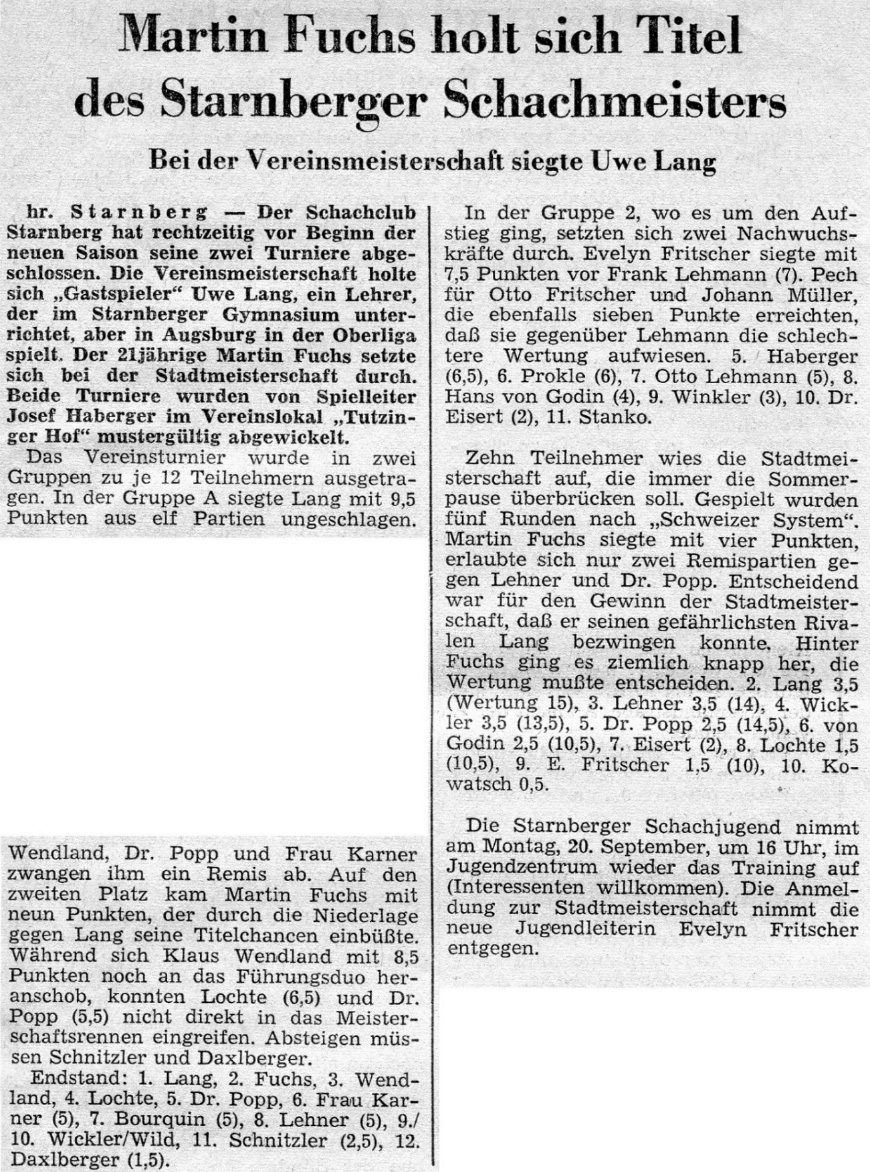 In den Starnberger Medien wurden neben Dr. Popps souveränem Erfolg bei der Klubmeisterschaft auch die starken Ergebnisse von Thomas Lochte und Martin Fuchs bei der Stadtmeisterschaft in derselben Spielzeit thematisiert (Bildquelle: Archiv SK Starnberg).
