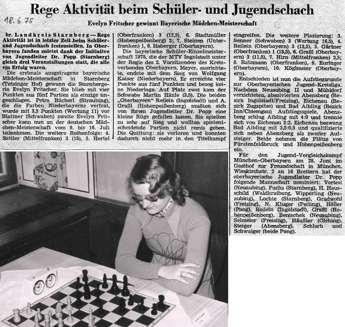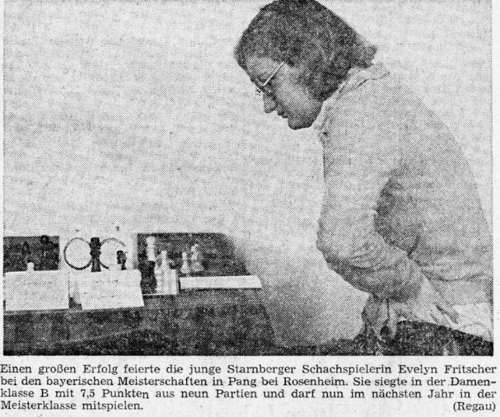 Erzielte mit 15 Jahren ihren größten schachlichen Erfolg: Petra Morsbach gewann nach zwei Vizemeistertiteln im Jahr 1972 die Damenmeisterschaft im Schachbezirk Zugspitze (Bildquelle: Archiv SK Starnberg).