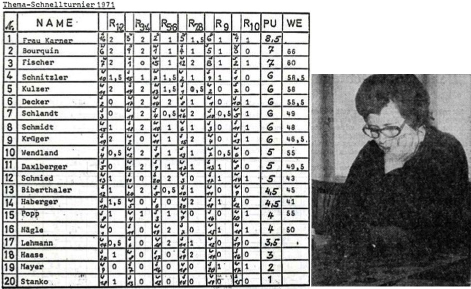 Erfolgreiche Premiere, aber keine Fortsetzung: trotz hoher Beteiligung wurde das Starnberger Thema-Schnellturnier nur im Jahr 1971 durchgeführt und fand mit Irmgard Karner eine überlegene Siegerin (Bildquelle: Archiv SK Starnberg).